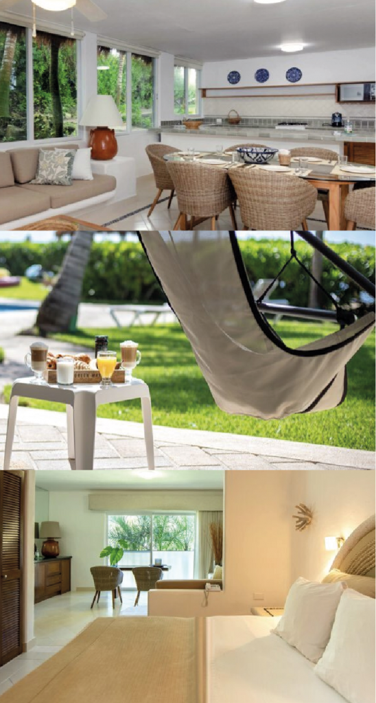 De 1, 2 y 3 recámaras, cada villa cuenta con cocina totalmente equipada, comedor, sala de estar, baño completo en cada recámara, secadora de pelo, WiFi gratuito, TV vía satélite, caja fuerte, aire acondicionado central y ventiladores de techo.