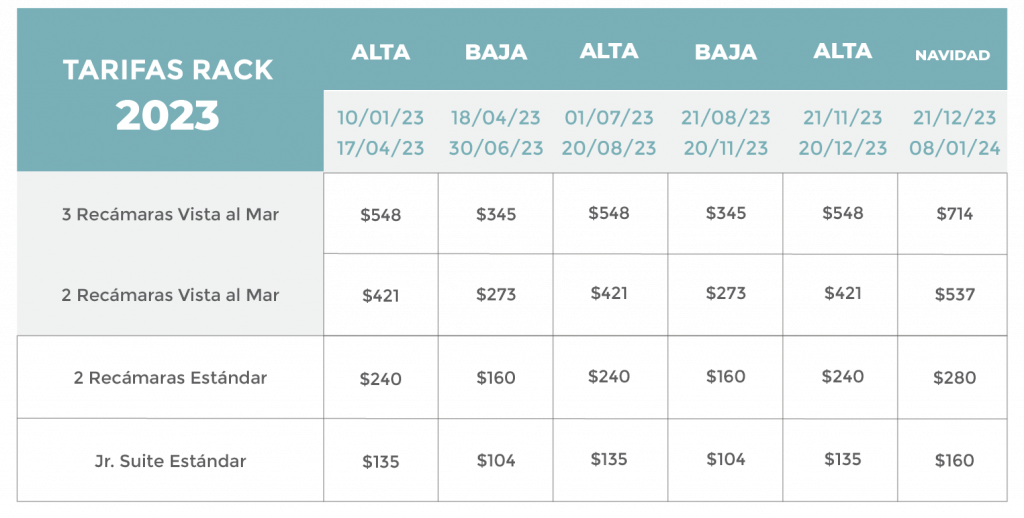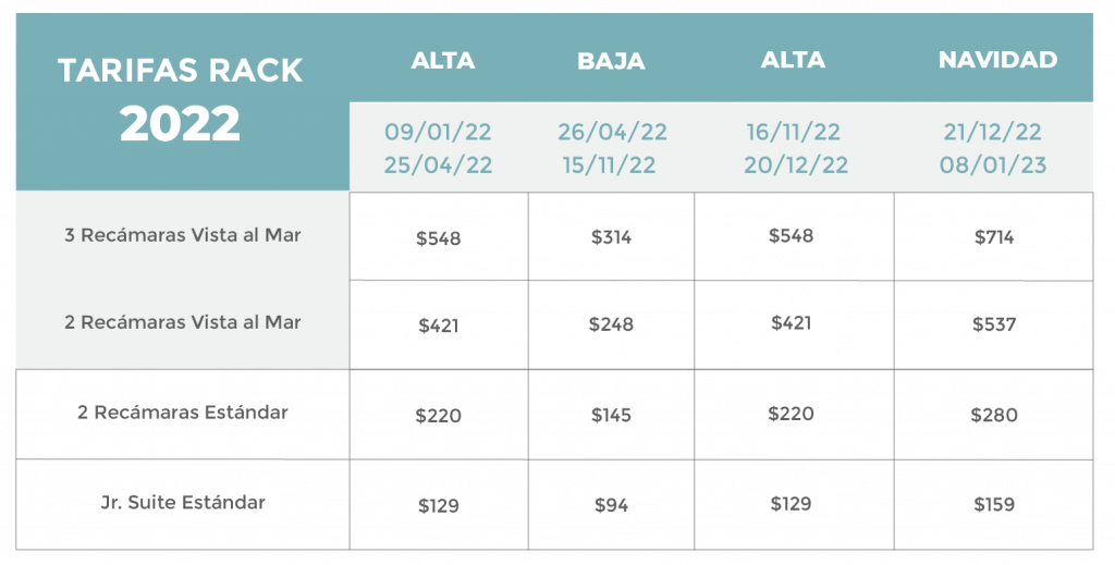 – Tarifas no incluyen el 19% de impuestos (16% I.V.A + 3% ISH)